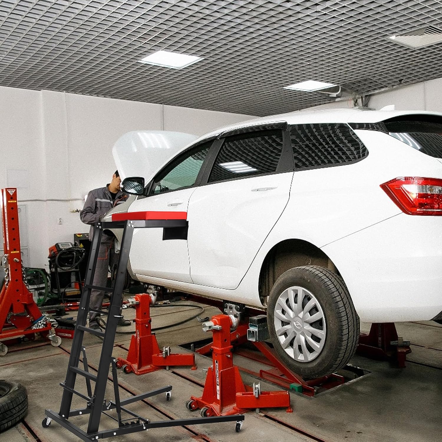 - Ideal for All Automotive Workspaces:Whether you’re a professional mechanic with a busy shop or a DIYer with a home garage, this fits right in. It works seamlessly with trucks, jeeps, vans, and more, handling everything from engine tune-ups to undercarriage fixes. Compact, durable, and easy to use—this is the tool every auto enthusiast needs to make maintenance simpler.