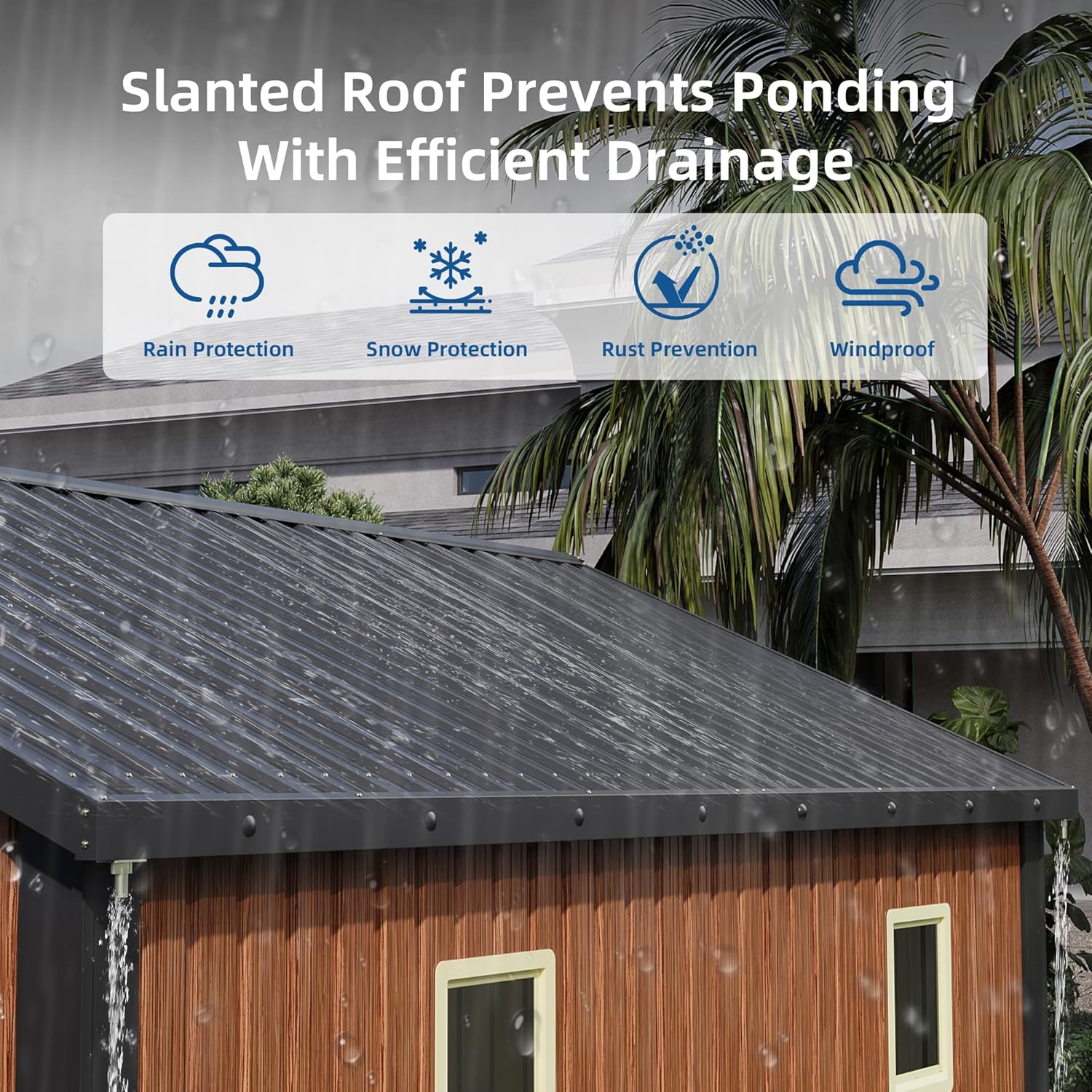 - 【Durable & Sturdy】Built with a heavy-duty steel frame, this all-metal garden shed features electro-galvanized coating and premium paint finish for maximum rust resistance. Engineered to withstand harsh climates, it won’t warp under sun exposure and delivers superior moisture-proof & UV-resistant performance—stay sturdy season after season