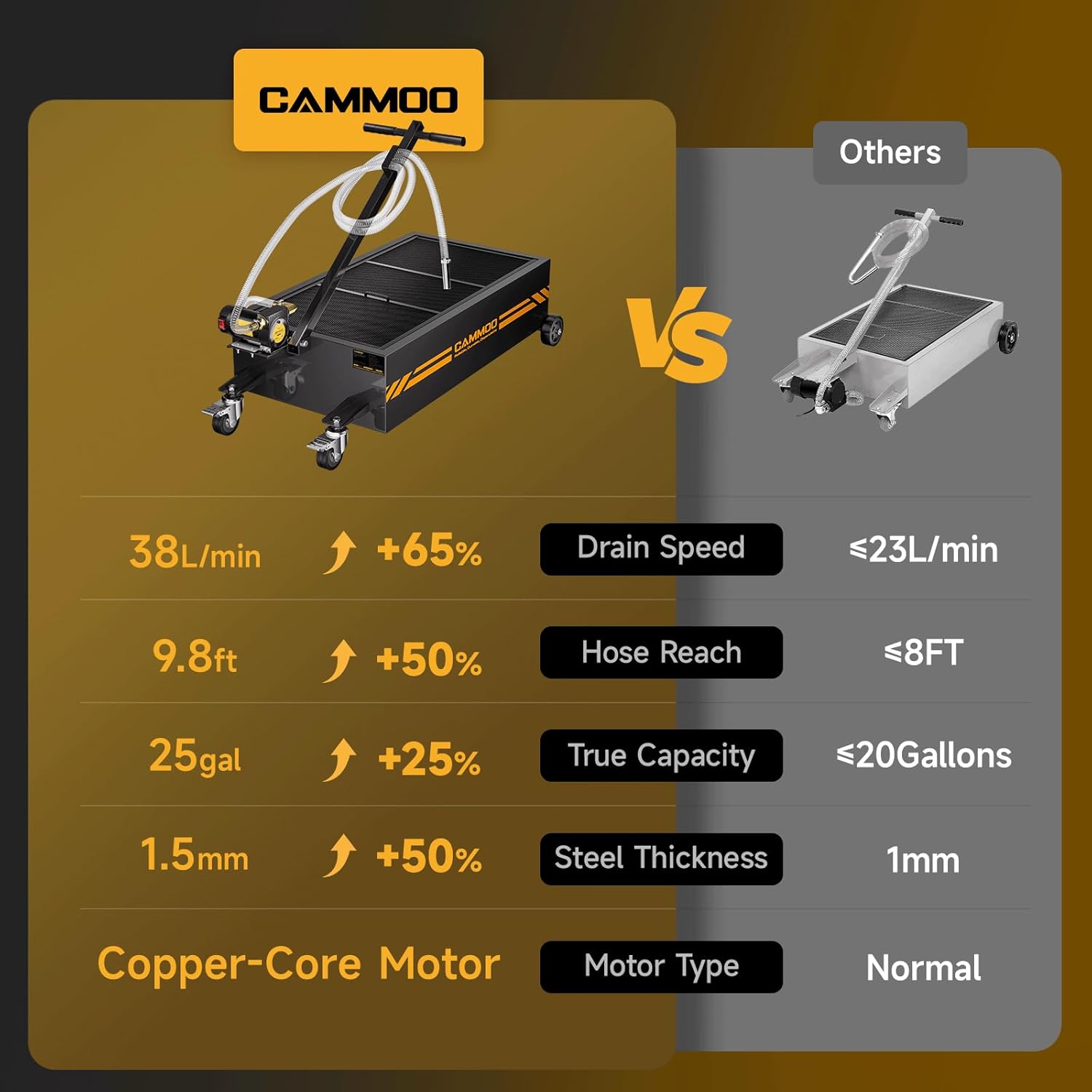 - Optimized Copper Motor:The copper motor features a 110V power supply and 200W maximum output, tipping the scales at 610.5g to stand heavier and more robust than standard motors in oil pans. This added heft translates to stronger performance: it delivers a powerful 38L/min flow rate, draining oil 65% faster to help finish jobs in less time. For busy shops, and weekend DIYers alike, this means boosted efficiency, reduced labor time, and smoother workflow—whether tackling back-to-back oil changes with oil pans or squeezing in a project at home. It is engineered to make every task quicker, easier, and more reliable.