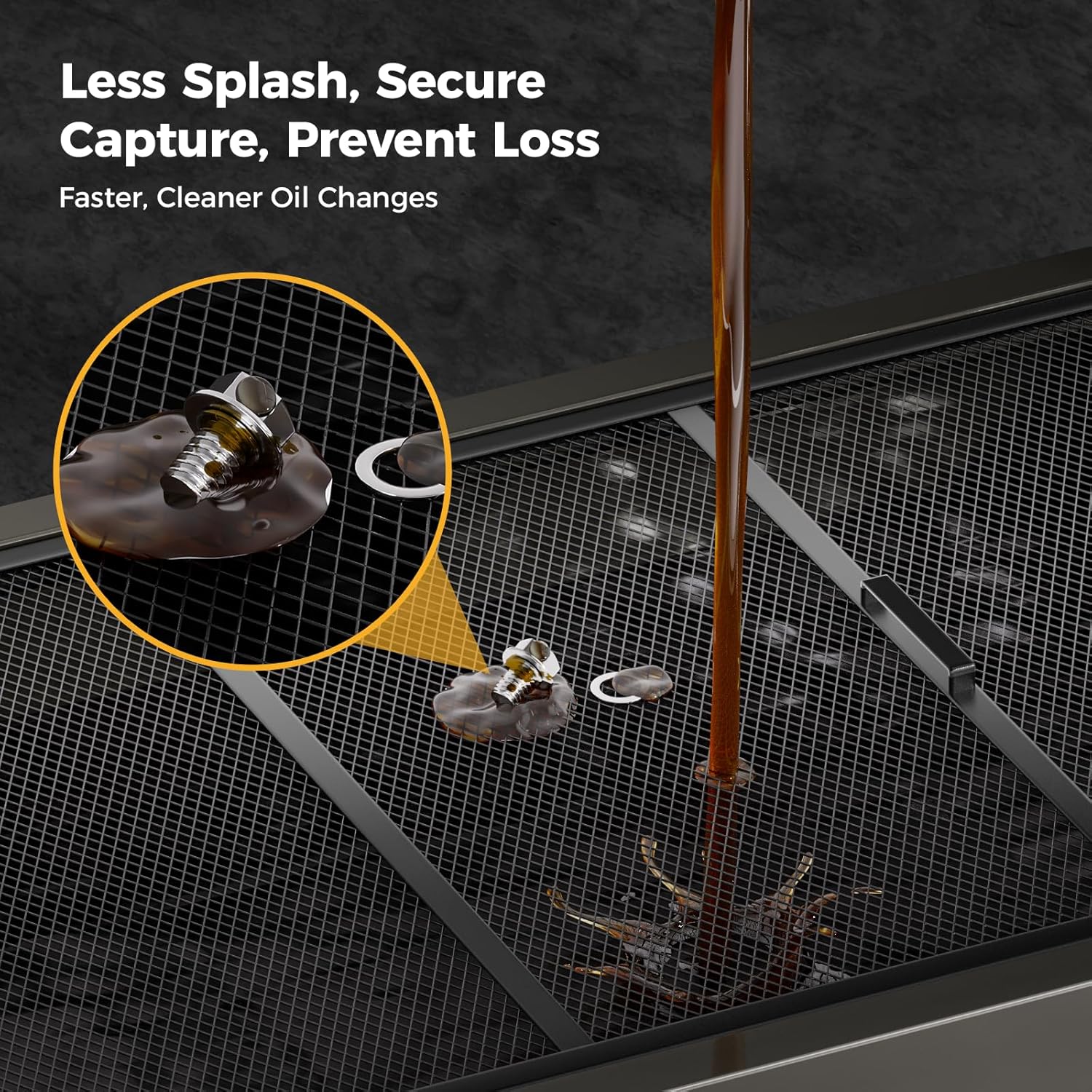 - User-Friendly Design:The 32.8× 16.9" filter screen with smaller holes on oil drain pans minimizes splatters and catches dropped parts, keeping floors clean and saving time. Its 1.2 mm metal frame resists warping, ensuring durability for oil drain pans. The T-handle folds from 40–180°, collapses flat for storage, and reaches easily under vehicles—perfect for maneuvering oil drain pans. Two fixed 4-inch wheels and two 3-inch swivel wheels with brakes ensure stable, secure positioning for oil drain pans—even on slopes. Together, these elements make every oil change with oil drain pans quicker, neater, and hassle-free.
