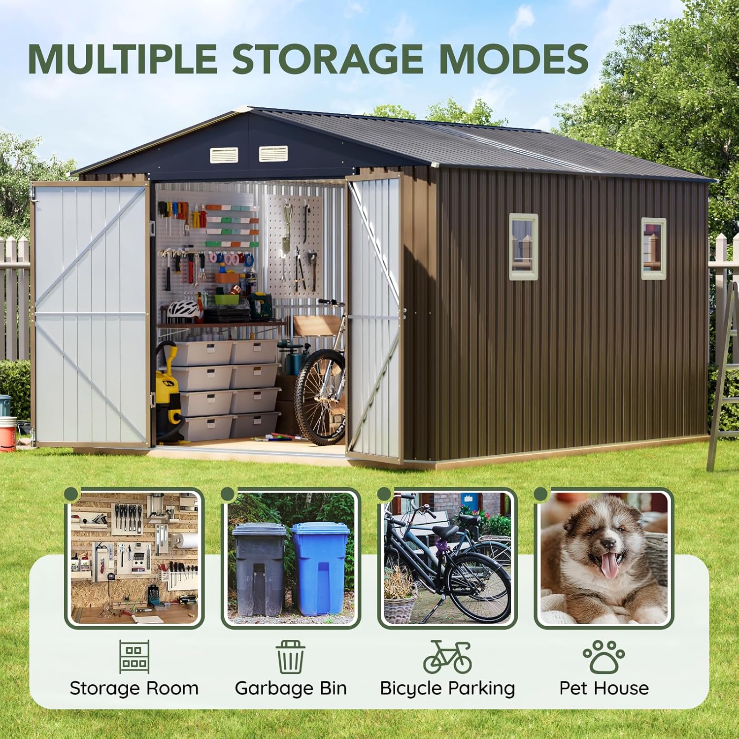- Spacious 10x12 FT Storage Capacity β Provides ample space for storing bikes, lawn tools, garden supplies, and seasonal equipment. Perfect for backyard, patio, or garden use.