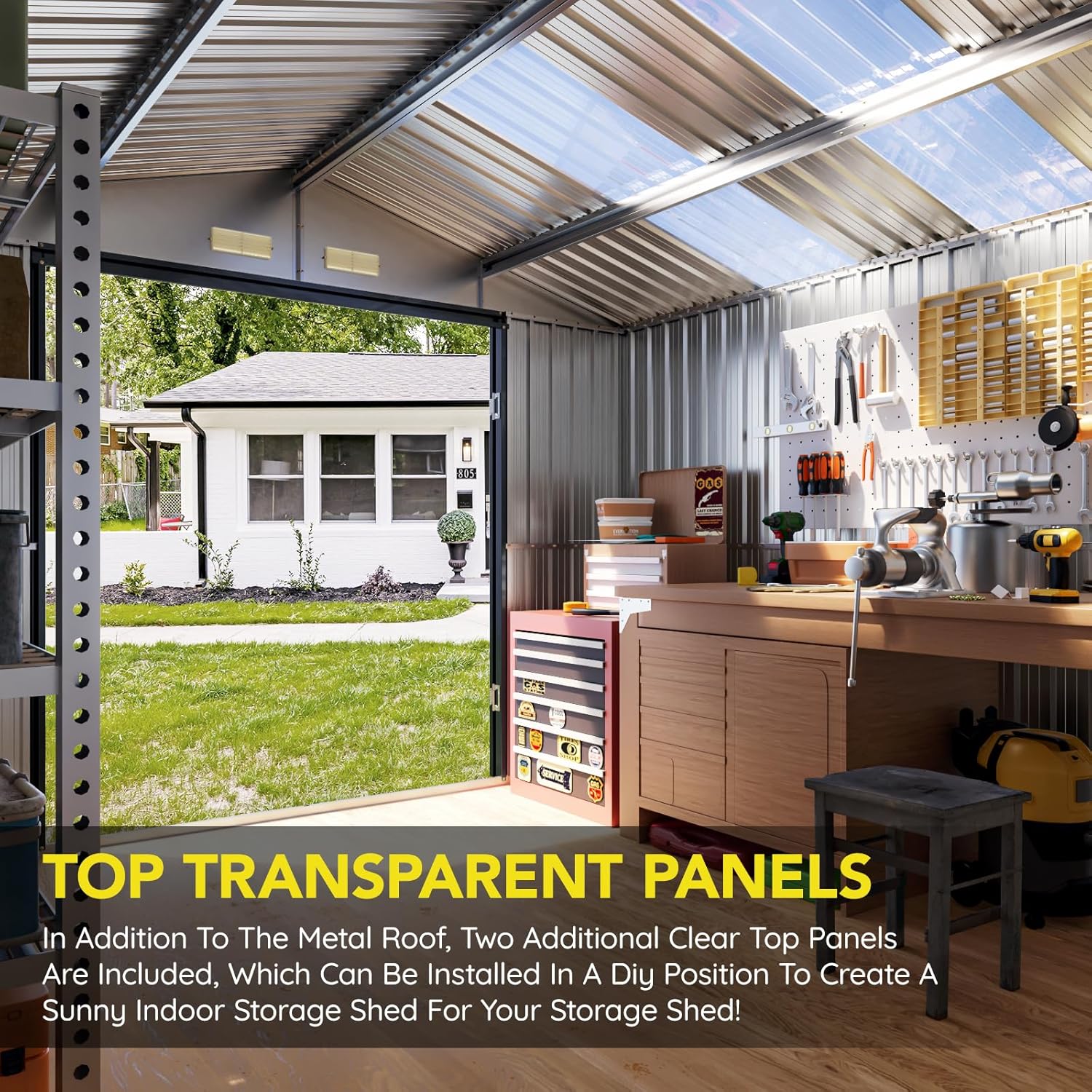 - Replaceable Skylight Roof Panel β The translucent roof panel can be easily replaced to maintain brightness inside the shed over time.